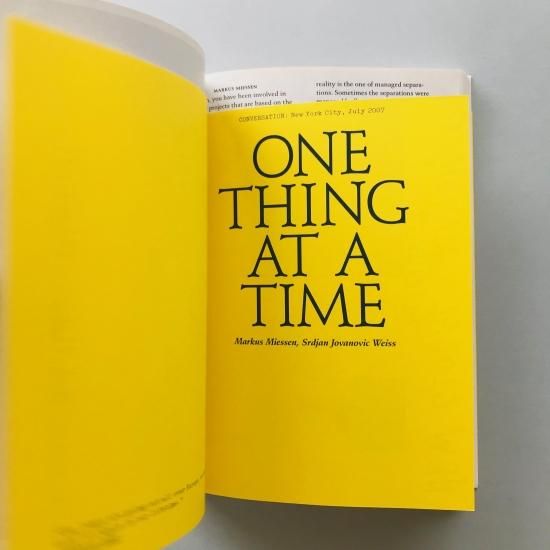 ¥í¥ó¥É¥ó¤òµòÅÀ¤Ë³èư¤¹¤ë·úÃ۲ȤǺî²È¤Î¥Þ¡¼¥«¥¹¡¦¥ß¡¼¥»¥ó¡ÊMarkus Miessen¡Ë¤¬ÊÔ½¸¤·¤¿Ëܽñ¤Ï¡¢2007ǯ¤Î¥ê¥è¥ó¡¦¥Ó¥¨¥ó¥Ê¡¼¥ì¡Ê¥Õ¥é¥ó¥¹¡Ë¤Ë»²²Ã¤·¤¿ºÝ¤Ë¡¢ÈबÀ©ºî¤·¤¿¶õ´ÖºîÉʤαäĹ¤È¤·¤Æ´©¹Ô¤µ¤ì¤¿¤â¤Î¡£º£Æü¤Î¥è¡¼¥í¥Ã¥Ñ¤ÇÀ¸³è¤¹¤ë¤³¤È¤¬²¿¤ò°ÕÌ£¤¹¤ë¤Î¤«¡¢À¯¼£¤ä·ÐºÑ¤Î¹½Â¤¤ËÂФ¹¤ëÌ䤤¤ò¼¨¤·¤¿°ìºý¡£¥Ö¥Ã¥¯¥Ç¥¶¥¤¥ó¤ÏZak Kyes¡£