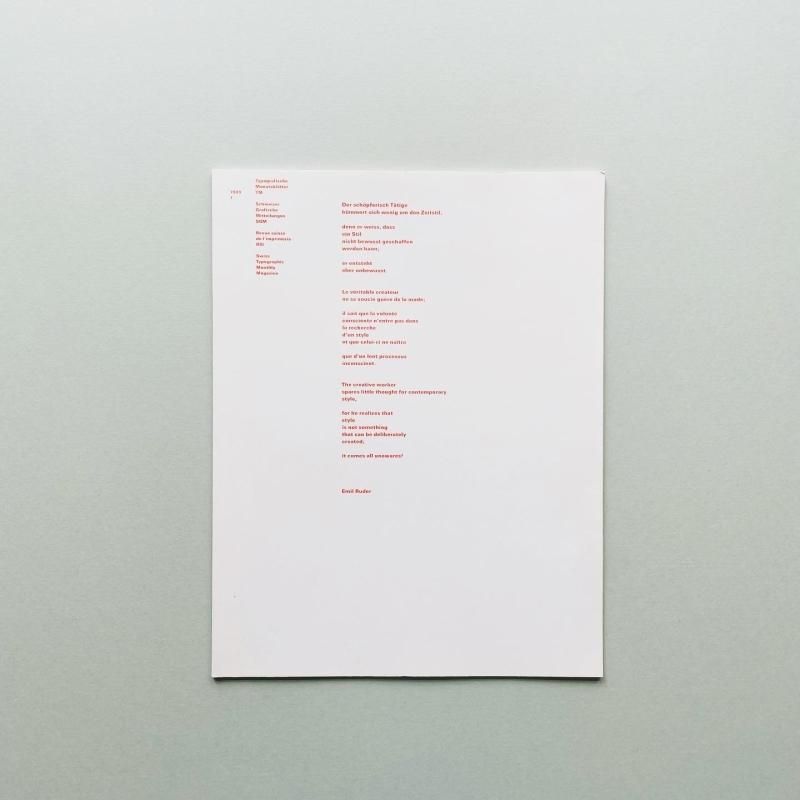 ¥¹¥¤¥¹¤Î¥¿¥¤¥Ý¥°¥é¥Õ¥£¤Î¸½¾õ¤ò¹ñºÝŪ¤Ë¹­¤á¤ë¤³¤È¤ËÀ®¸ù¤·¡¢¥Ë¥å¡¼¥¦¥§¡¼¥Ö¥¹¥¿¥¤¥ë¤Î¥¢¥¤¥Ç¥¢¤ò¹­¤¯ÅÁ¤¨¡¢1930ǯÂ夫¤éÌó80ǯ´Ö³¤¤¤¿½ÅÍפʻ¨»ï¡ÖTypografische Monatsblatter¡ÊTM»ï¡Ë¡×¡£Ëܽñ¤Ï2021ǯ¤ËµþÅÔ¤Îddd¥®¥ã¥é¥ê¡¼¤Ç¹Ô¤ï¤ì¤¿Å¸¼¨¡Ö¥Ø¥ë¥à¡¼¥È ¥·¥å¥ß¥Ã¥È ¥¿¥¤¥Ý¥°¥é¥Õ¥£¡§¥È¥é¥¤ ¥È¥é¥¤ ¥È¥é¥¤¡×¤ÇŸ¼¨ÈÎÇ䤵¤ì¤¿TM»ï¤Ë¤ª¤±¤ë¥Ø¥ë¥à¡¼¥È¡¦¥·¥å¥ß¥Ã¥È¹æ¡ÖTM 1989 Nr.1¡×¤ÎºþÈ´¤­¡ÊÆÃ½¸µ­»öºþÈ´¤­Èǡˡ£¥Ç¥¶¥¤¥ó¤Ï¥Ø¥ë¥à¡¼¥È¡¦¥·¥å¥ß¥Ã¥È¤Ë¤è¤ë¤â¤Î¡£